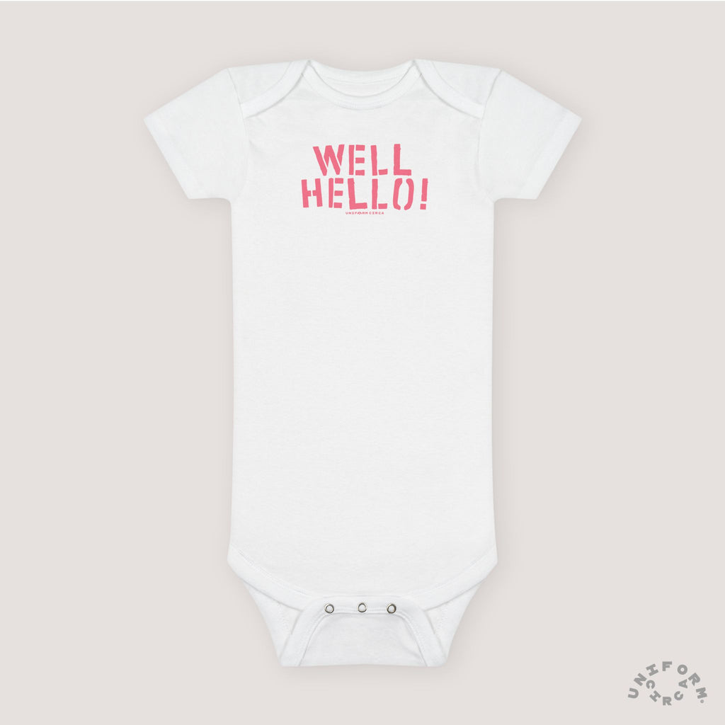 Baby Onesie - 'Well Hello!' Cute Infant Bodysuit for Newborns (Printed Pink)