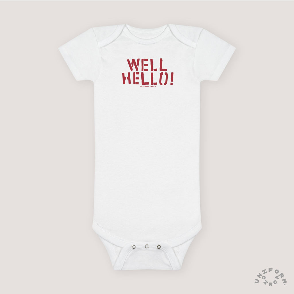 Organic Baby Onesie - 'Well Hello!' Cute Infant Bodysuit for Newborns (Printed Red)