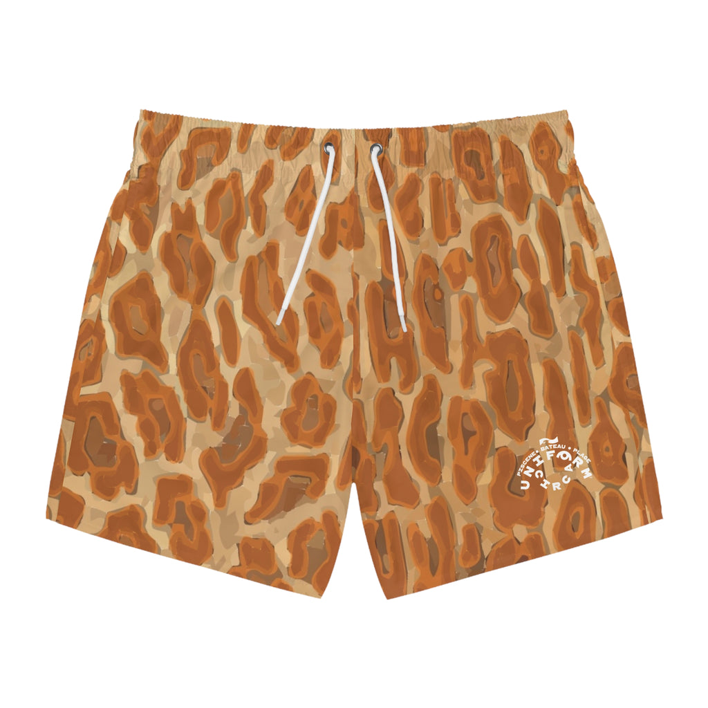 RUST/TAN LEOPARD SWIM TRUNKS | Printed
