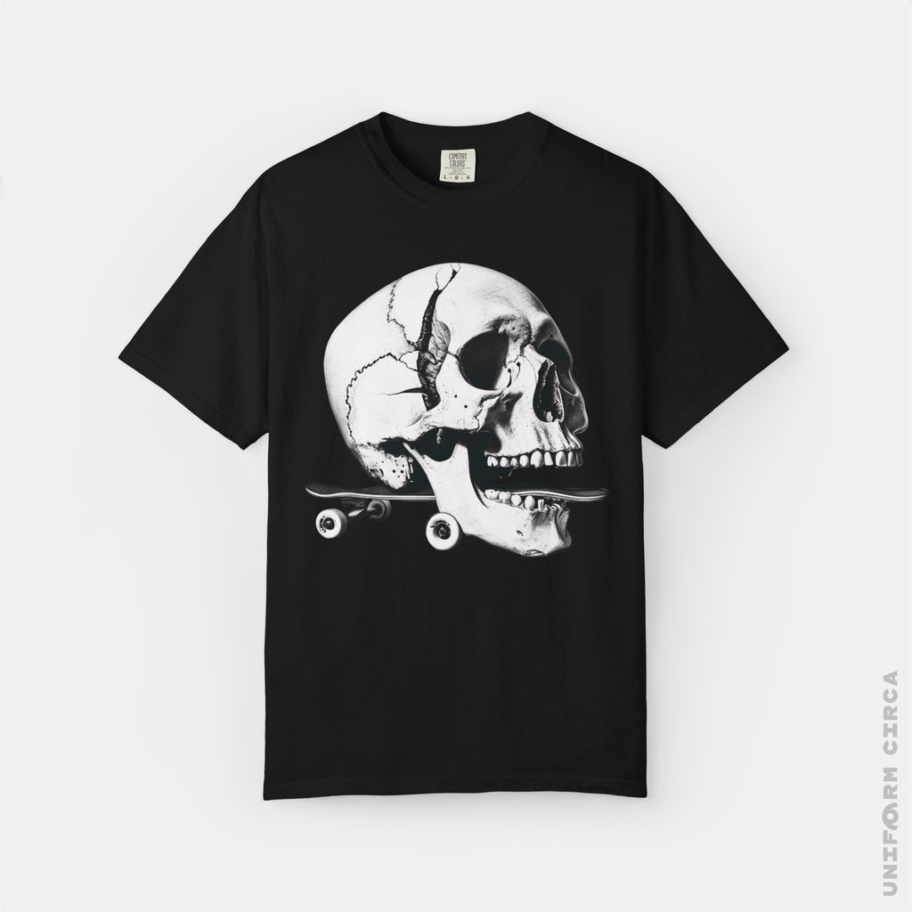 SKULL & BOARDS CREWNECK T-SHIRT | Printed Unisex Garment-Dyed Graphic Tee