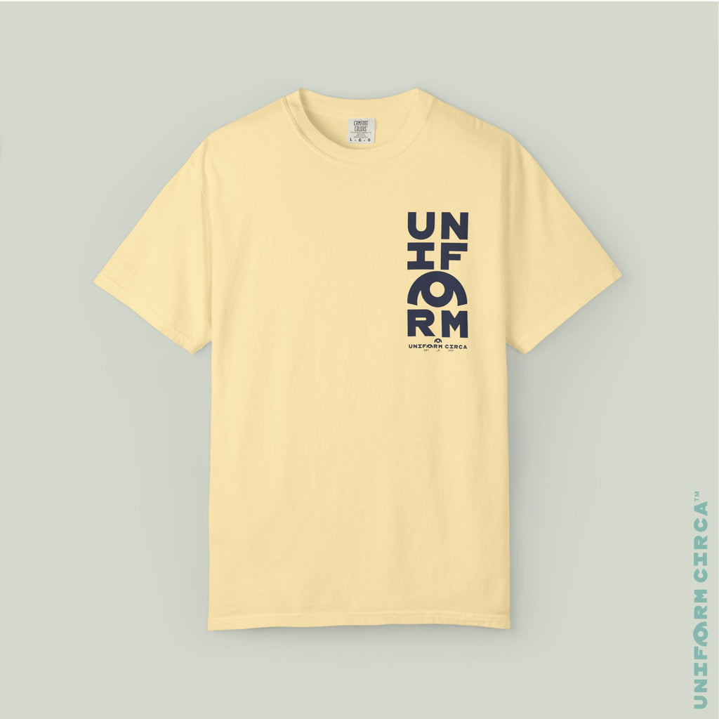 Uniform Circa T-Shirts are 100% Cotton & crazy soft. They wear with a little bit of heft, a sort of medium weight like your favorite concert T after years of washing. They drop just below the belt/waist, are true to size, and have a perfect slightly baggy vibe if you order a size up. They get even better with each wash. We know these will become your favorite T-Shirts, and part of your everyday go-to.