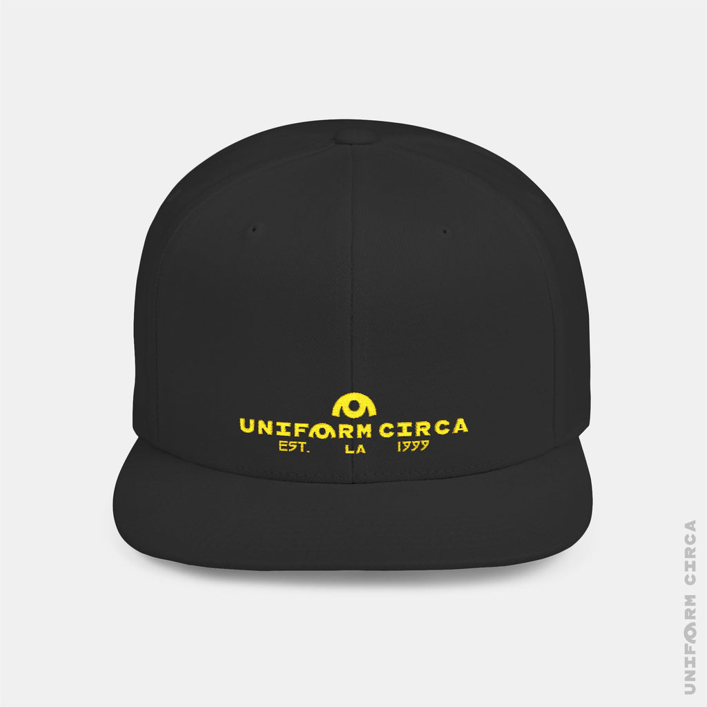 WORDMARK | Stitched Yellow/Gold | Flat Bill Snapback Hat, Trendy Cap for Casual Wear, Streetwear Accessory, Perfect Gift for Friends and Family