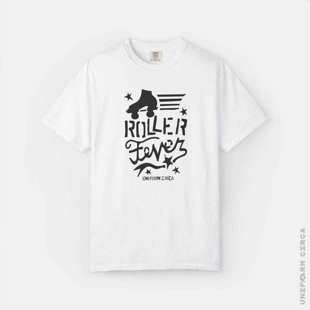 ROLLER FEVER - Crewneck T-Shirt | 100% Cotton | Designed & Printed in California _ UNIFORM CIRCA_Printed Black