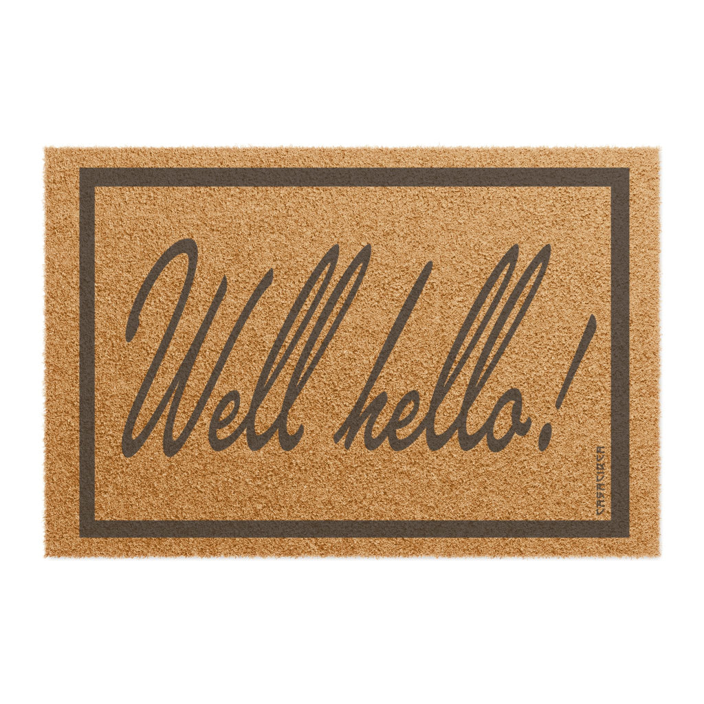 CASACIRCA ENTRYWAY | WELL HELLO | BLEACHED RED | Stylish Doormat, Entryway Rug, Modern Home Decor, Indoor Outdoor Mat, Gift for New Homeowners, Housewarming Decor