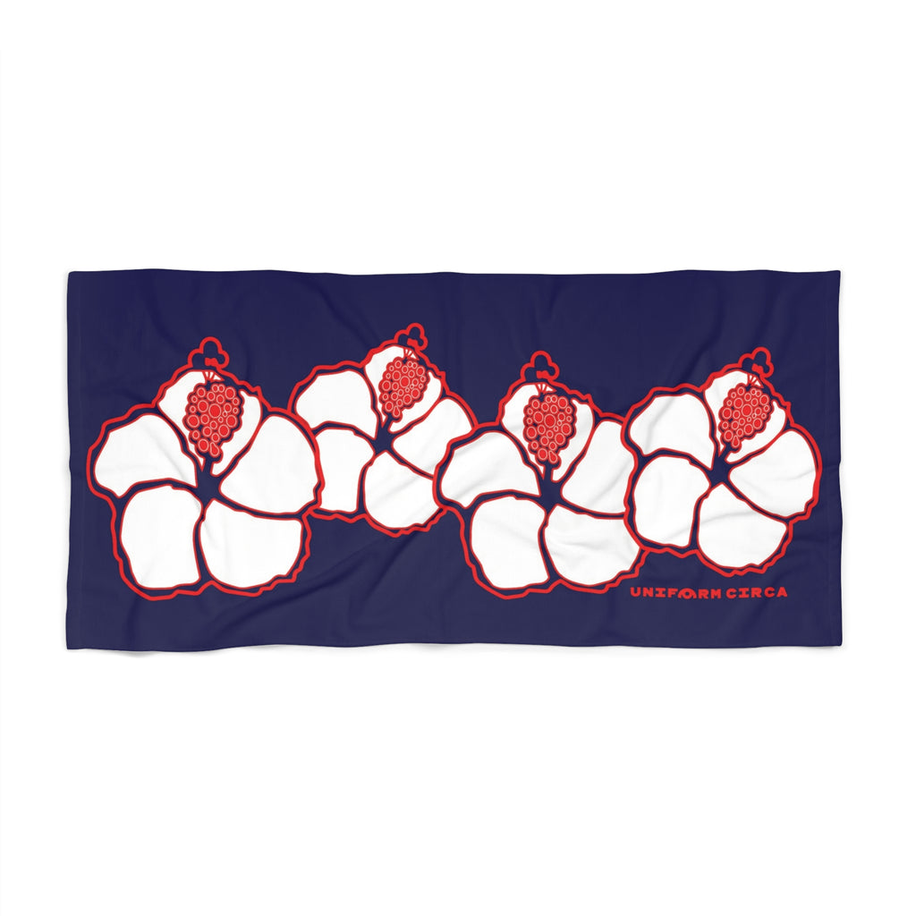 HIBISCUS CHAIN | WHITE-NAVY-RED | Beach Towel - Perfect for Summer Fun and Relaxation